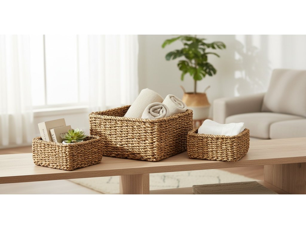 Sada úložných košíků z mořské trávy čtvercová (3 ks, přírodní)