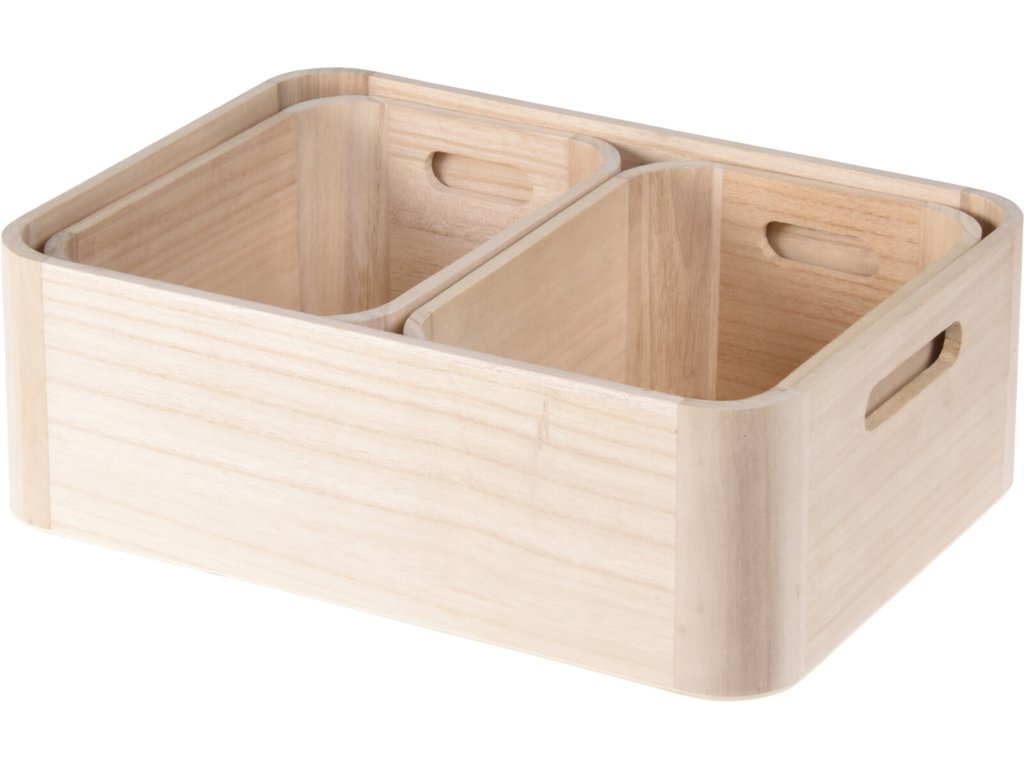 Sada úložných krabic WoodyBox – světlé dřevo, 3 ks, dvě velikosti