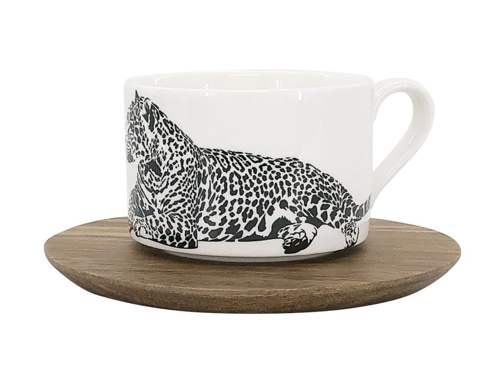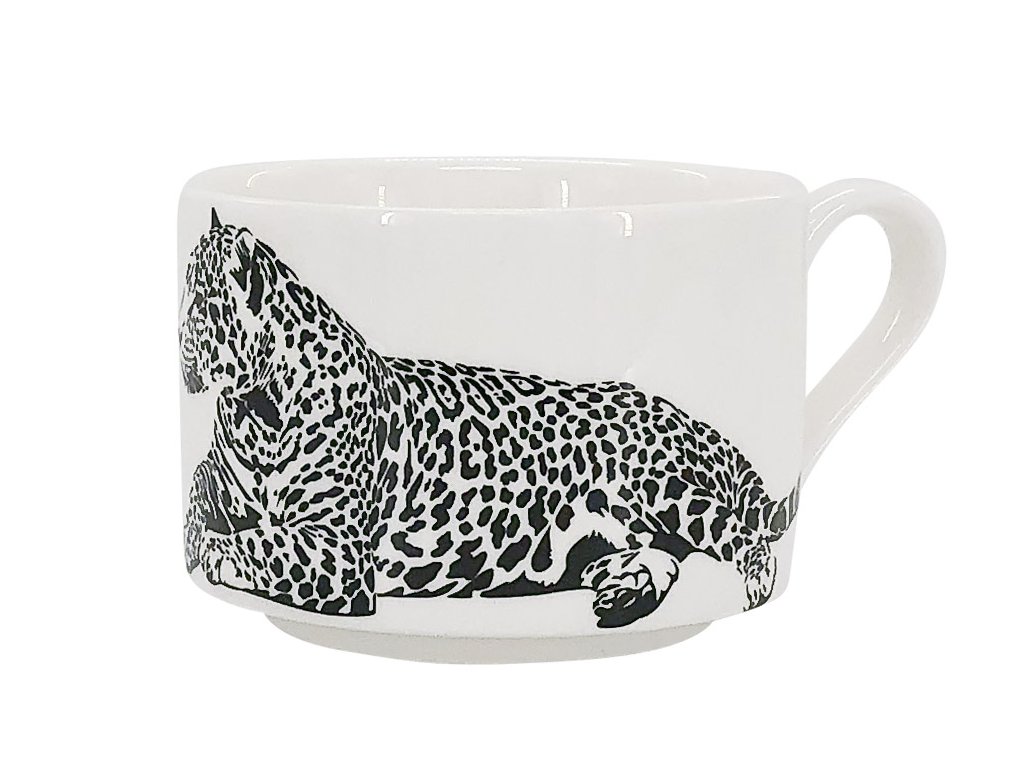 Kvalitní porcelán s nádechem smetanové barvy s dekorem v podobě Jaguára . Tvar válce hrnku zaručuje dobrou stabilitu a je příjemný do ruky.