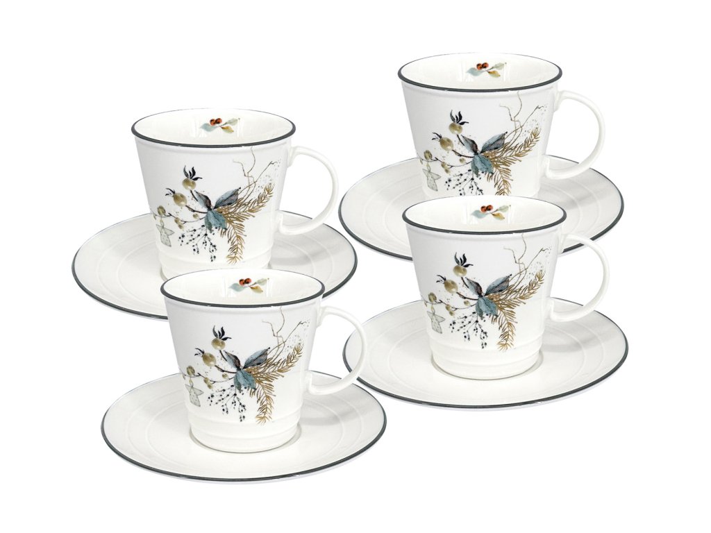 Porcelánový šálek s podšálkem Vánoční Nostalgie, 250 ml, sada 4 ks