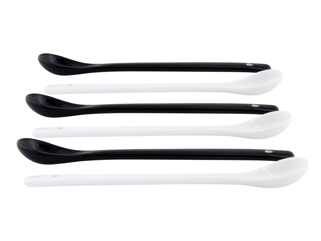 Sada 6 ks porcelánových lžiček na míchání limonád a koktejlů. Nadčasová černobílá kombinace barev.