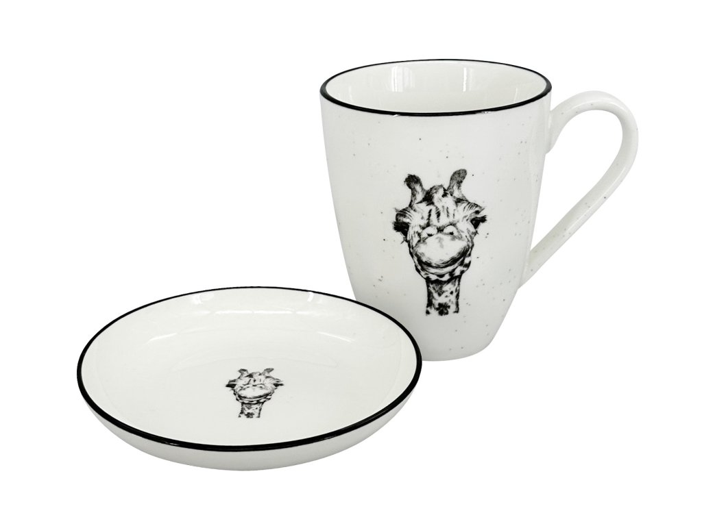 Set 2 ks - Hrnek 450ml a mistička Žirafa, bílá/černá