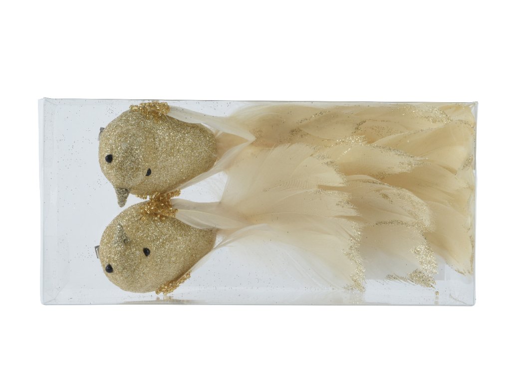 SET 2 ks ptáčků na klipu, 20 cm, šampáň, KSD