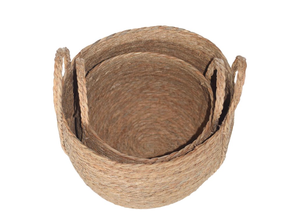 Získáte dva různé velikosti košů – velký L (32 x 32 x 28 cm) a střední M (26 x 26 x 23 cm) – které jsou navrženy tak, aby se daly snadno stohovat do sebe, což usnadňuje skladování. Každý koš je vybaven dvěma pevnými pletenými uchy pro snadnou manipulaci a přenášení. Sadu Boma můžete využít jako stylové obaly na květináče, jako koše na prádlo v koupelně, nebo jako velký úložný prostor na hračky, polštáře a deky v obývacím pokoji. Pletené koše Boma jsou esencí přírodního designu a dokonale doplní jakýkoli prostor. Objednejte si tento stylový úložný set a dodejte svému domovu pocit tepla a útulnosti.