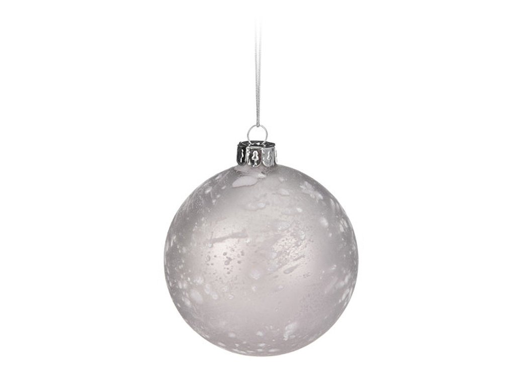 Set 3 ks - Vánoční skleněná ozdoba koule 8cm, bílá/stříbrná