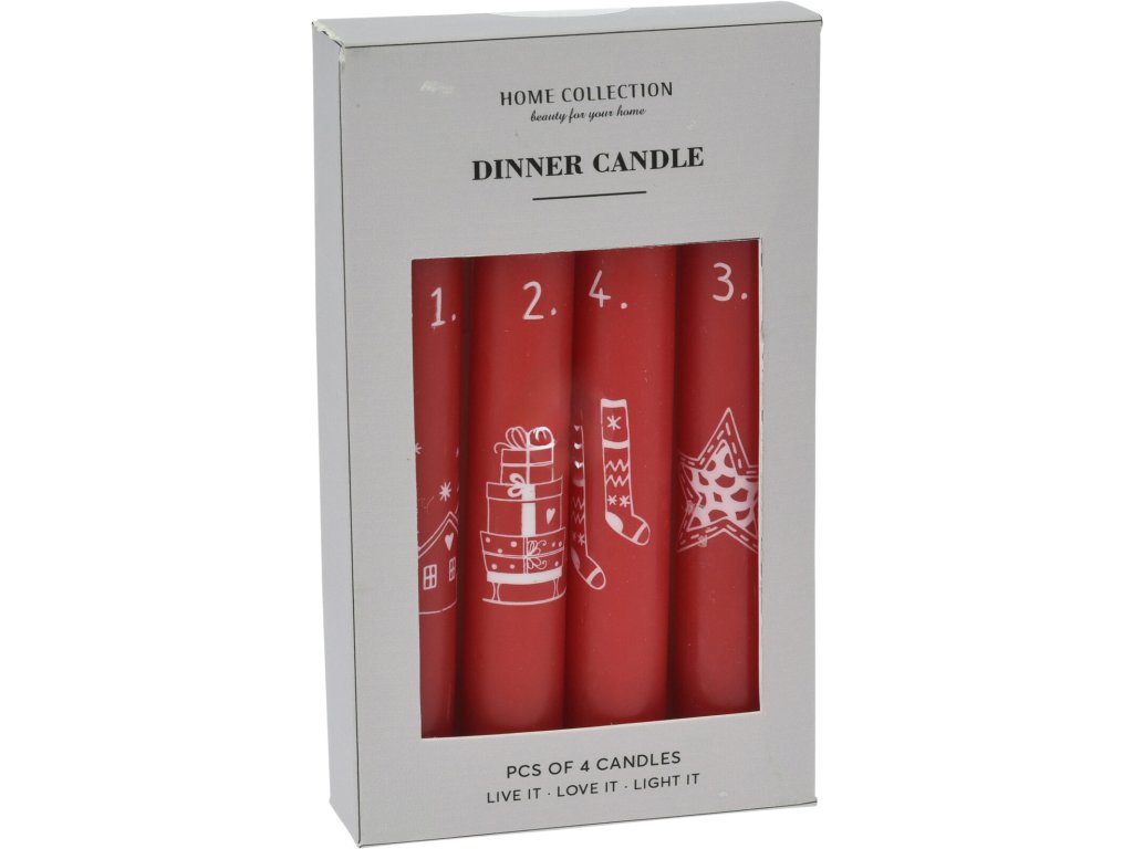 Hledáte-li červené adventní svíčky s čísly nebo dekoraci na adventní věnec, tento set 4 ks svíček je ideální volbou, která rozzáří Vaše Vánoce.