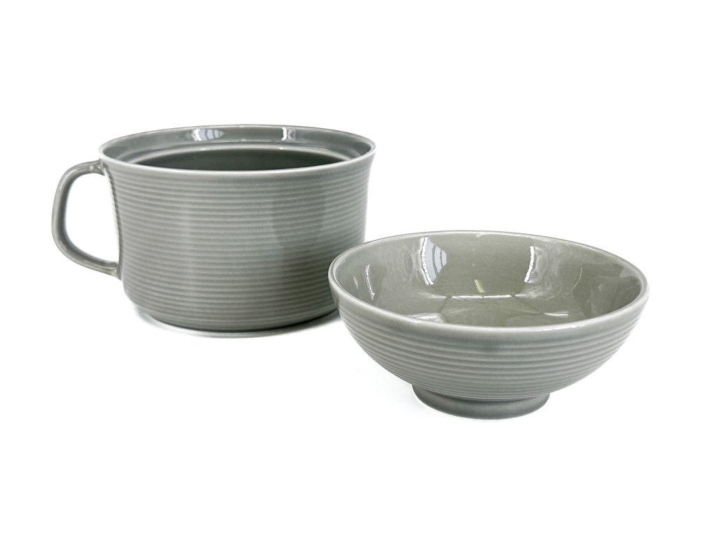 Set hrnek s miskou Deux, šedá, keramika, objem 900 ml