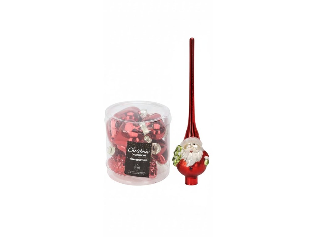Set - Špička na vánoční stromek Santa + Sada vánočních skleněných ozdob 12 ks