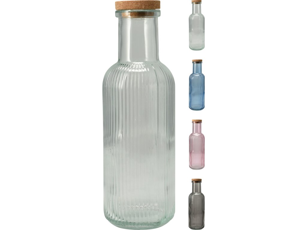 Skleněná láhev s korkovým víčkem, 1l, modrá
