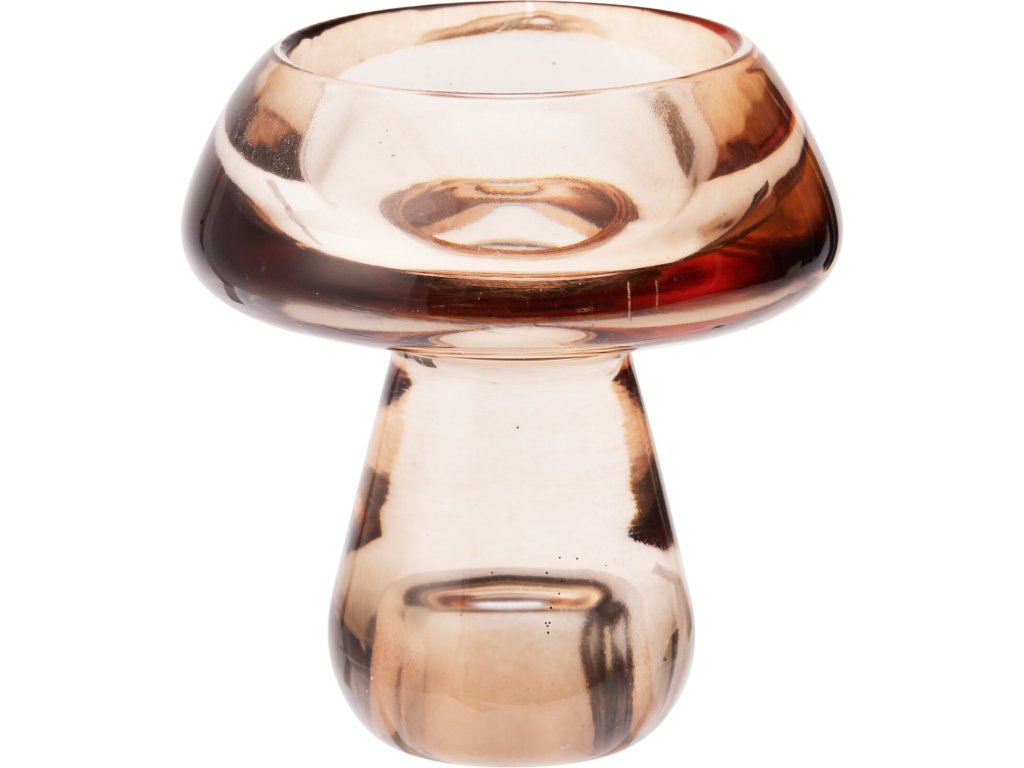 Skleněný svícen HOUBA jantarový (8x8x8.8 cm)