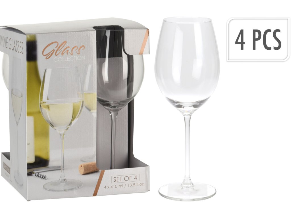 Sada obsahuje čtyři sklenice na víno bílé, které jsou ideální pro servírování oblíbených vín a vytváření příjemné atmosféry při společných chvílích s rodinou a přáteli. Každá sklenice má kapacitu 410 ml a je navržena s ohledem na maximální uživatelský komfort a eleganci. Klíčové vlastnosti tohoto produktu zahrnují: