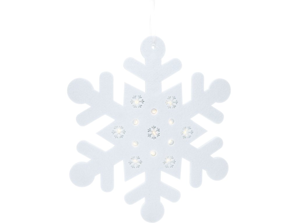 Sněhová vločka LED HANGDECO, 35cm, filc, bílá