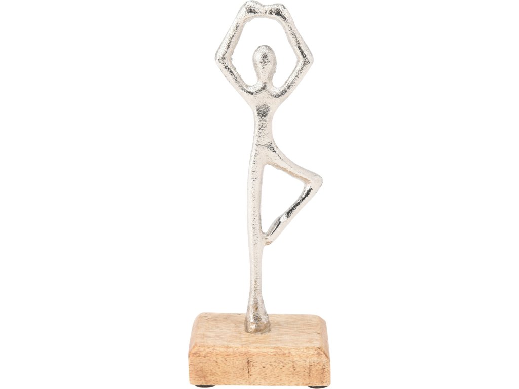 Soška tančící postavy na dřevěném podkladu je elegantním a moderním dekorativním prvkem, který dodá vašemu interiéru styl a dynamiku. Vyrobena z lesklého stříbrného hliníku a mango dřeva, tato soška v taneční pozici A přináší do prostoru nádech pohybu a elegance. Její rozměry 85x60x210 mm ji činí ideální dekorací pro různé povrchy, ať už jde o poličky, komody nebo pracovní stoly.