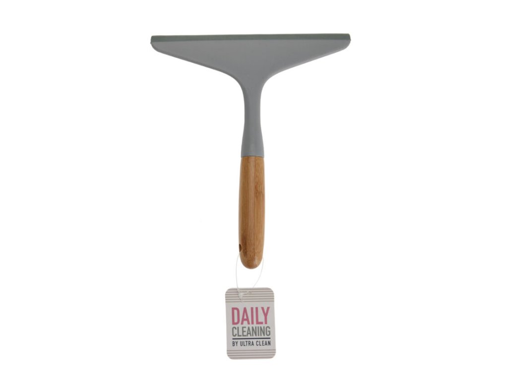 Stěrka ze šedého silikonu a rukojeť z bambusového dřeva vytváří moderní vzhled.