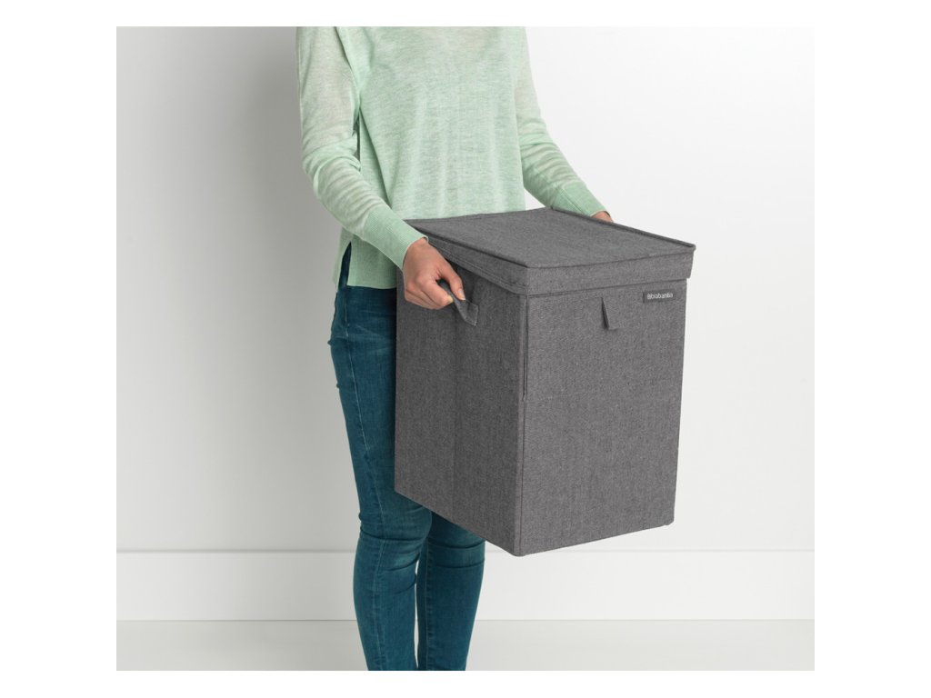 Textilní stohovatelný box v černé žíhané barvě o objemu 35 L.