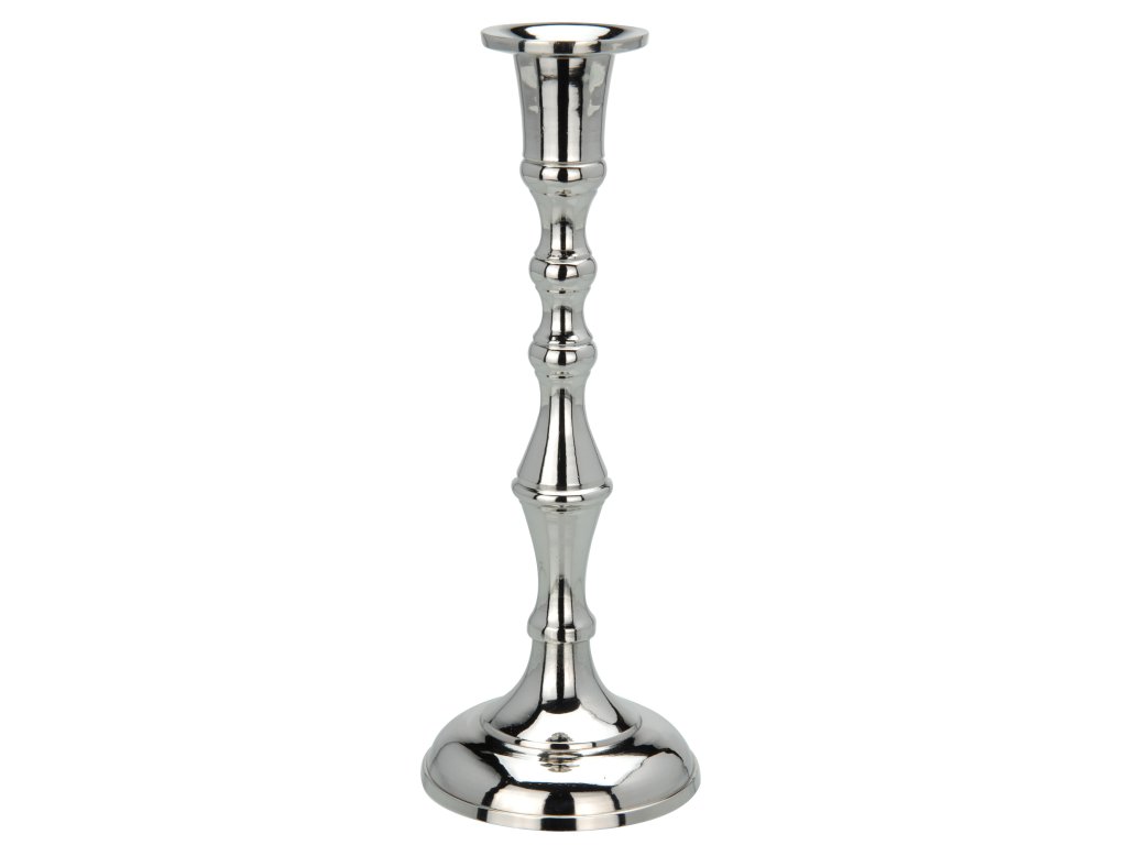 Elegantní stříbrný kovový svícen vysoký 20 cm je navržen pro jednu svíci a přináší do vašeho interiéru klasický styl a eleganci. Zapálená svíčka v tomto svícnu dokáže vytvořit nejen slavnostní atmosféru, ale také útulné a romantické prostředí. Tento vysoký svícen se stane krásným bytovým doplňkem, který vynikne na komodě, uprostřed prostřeného stolu, nebo dokonce v koupelně.