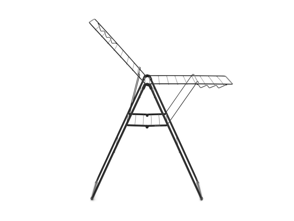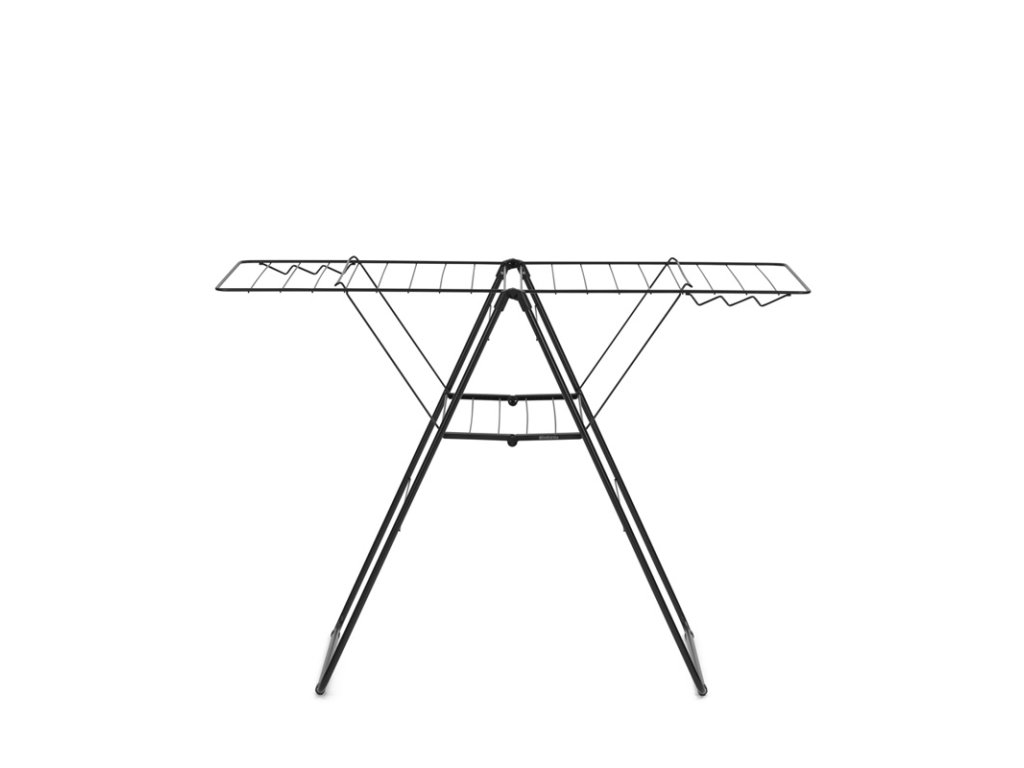 Skládací sušák na prádlo do interiéru v matné černé barvě.