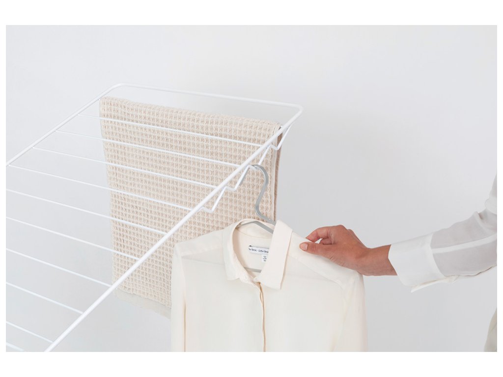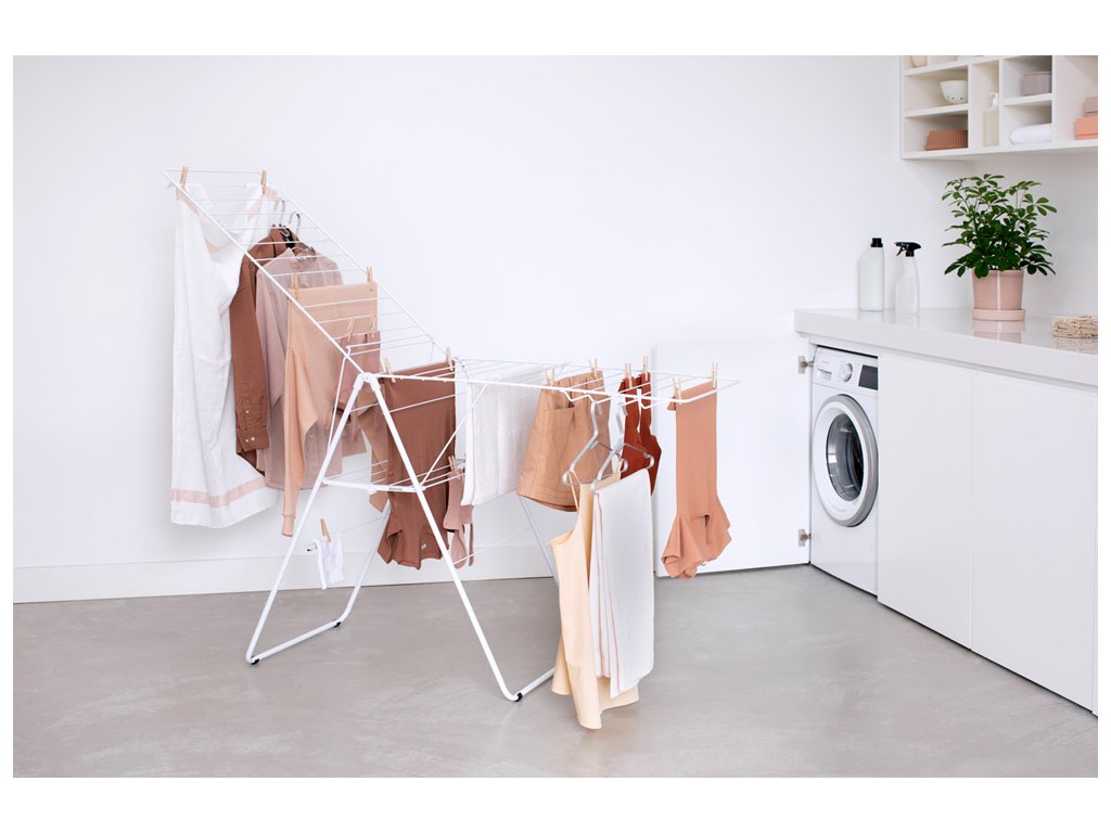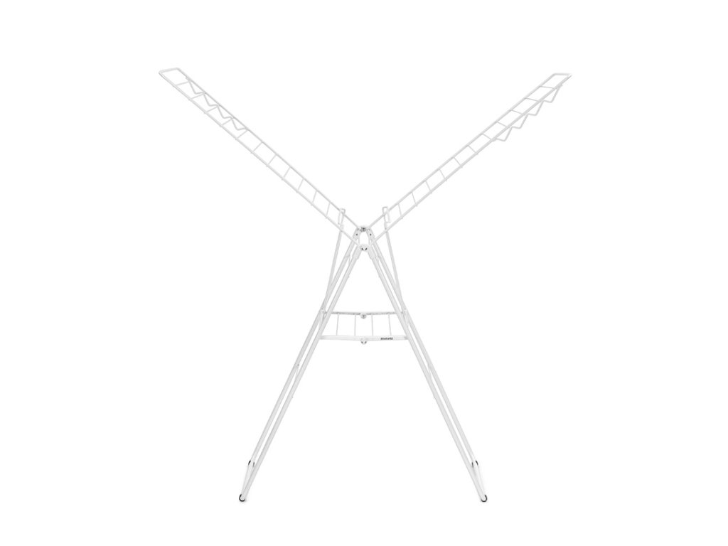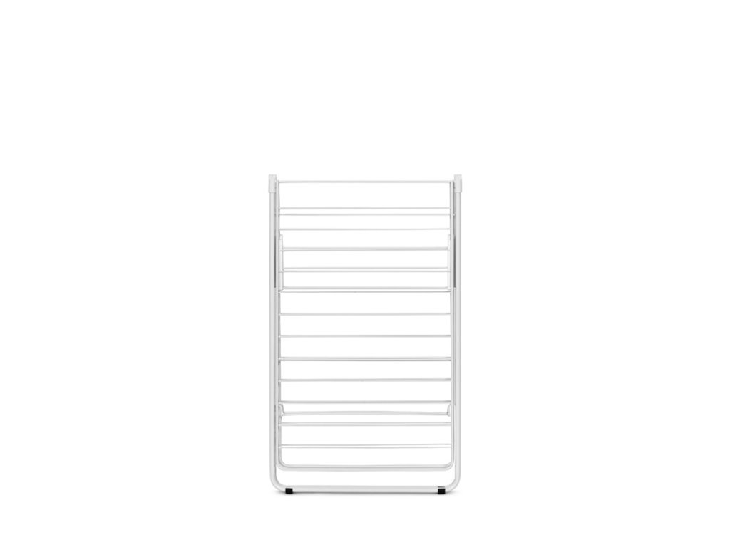 Skládací sušák na prádlo do interiéru v bílé barvě.