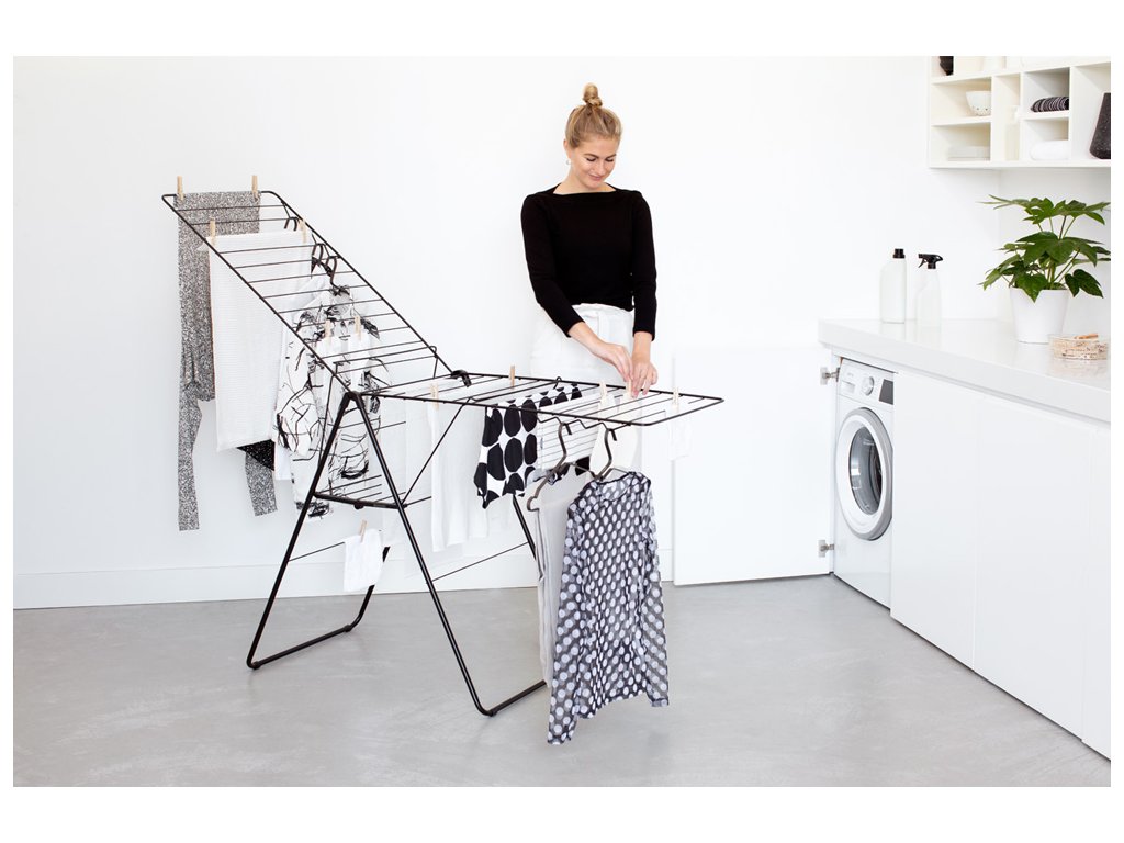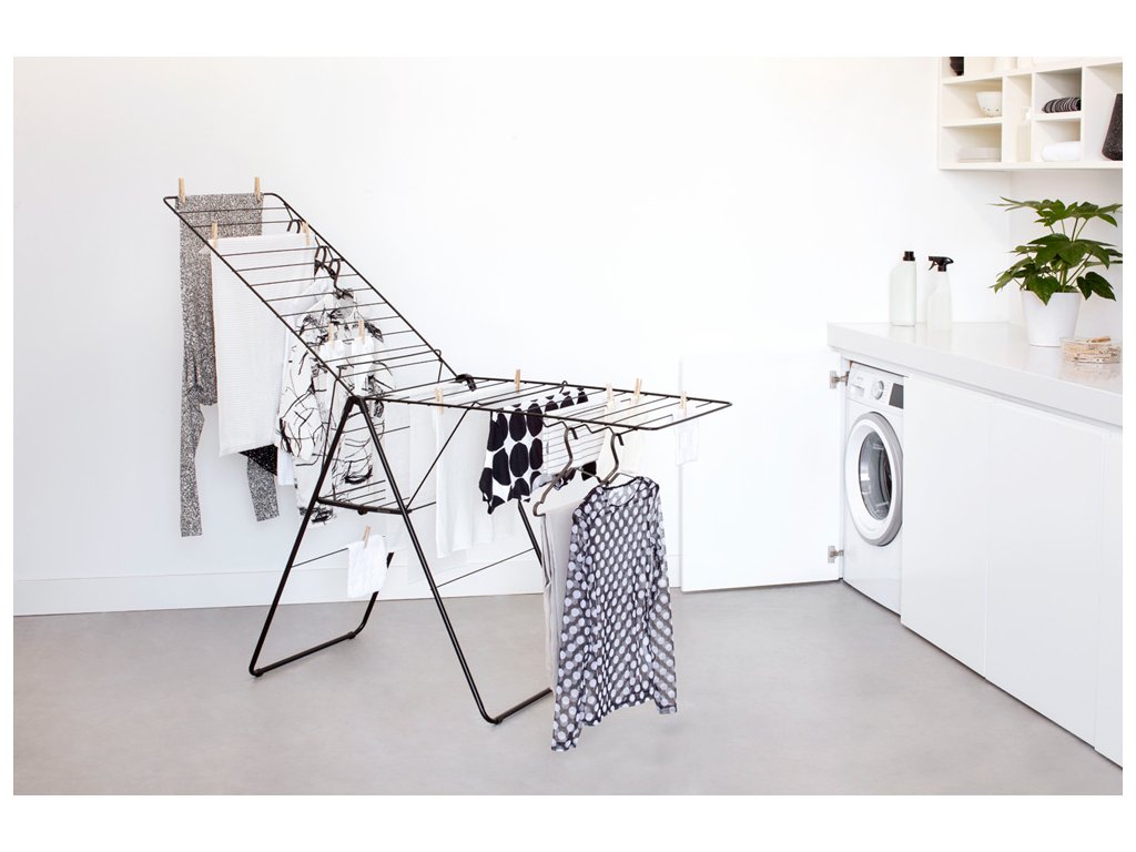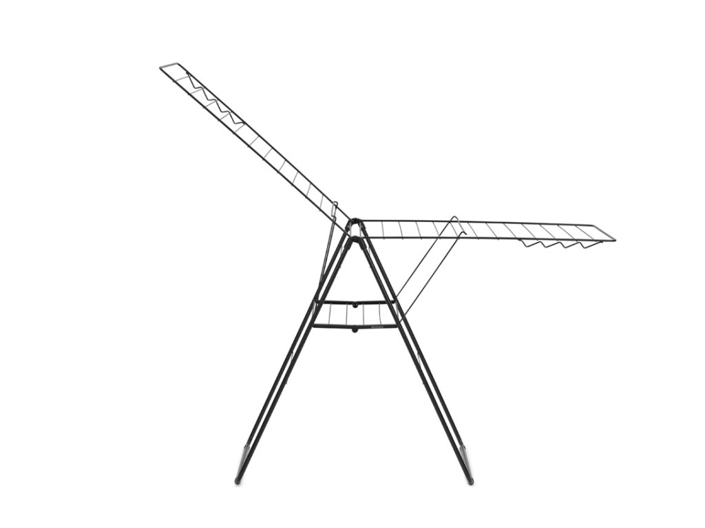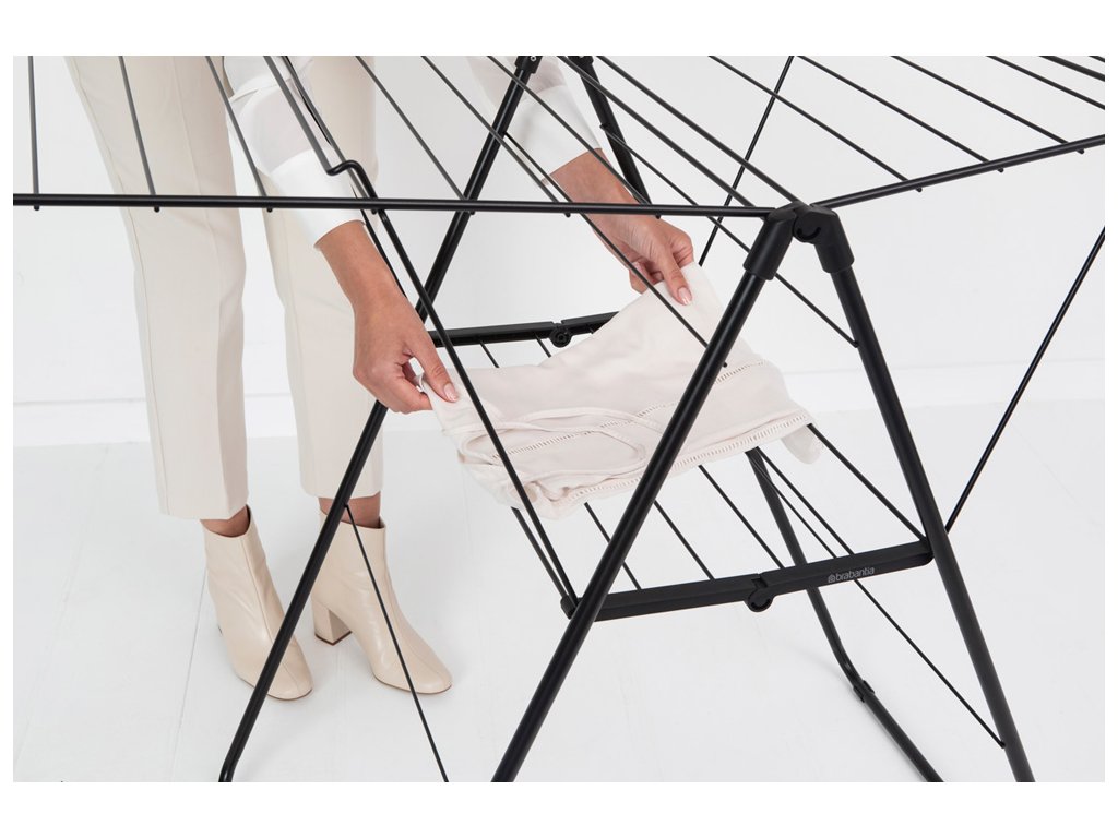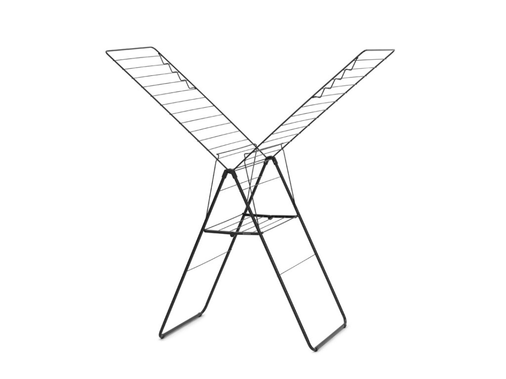 Skládací sušák na prádlo do interiéru v matné černé barvě.