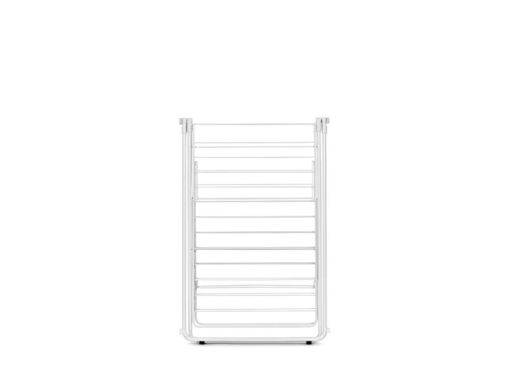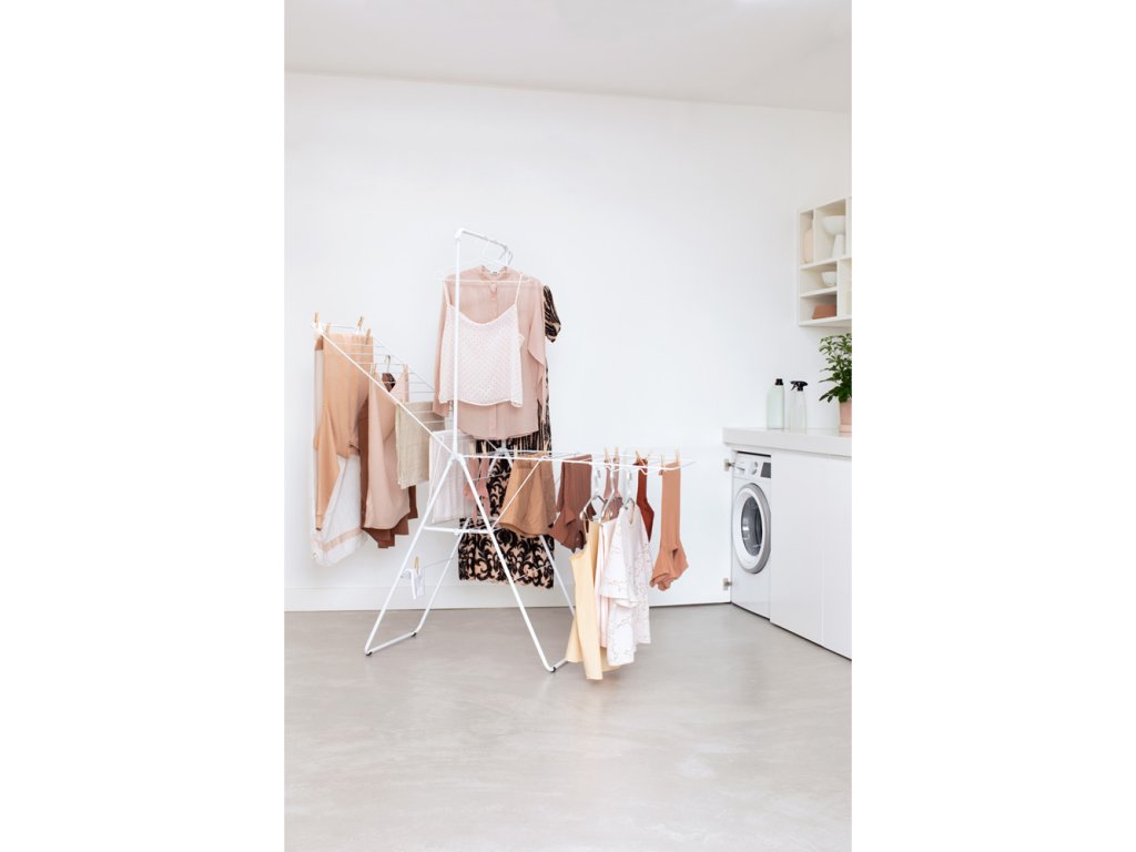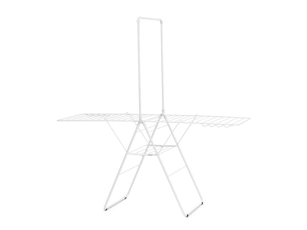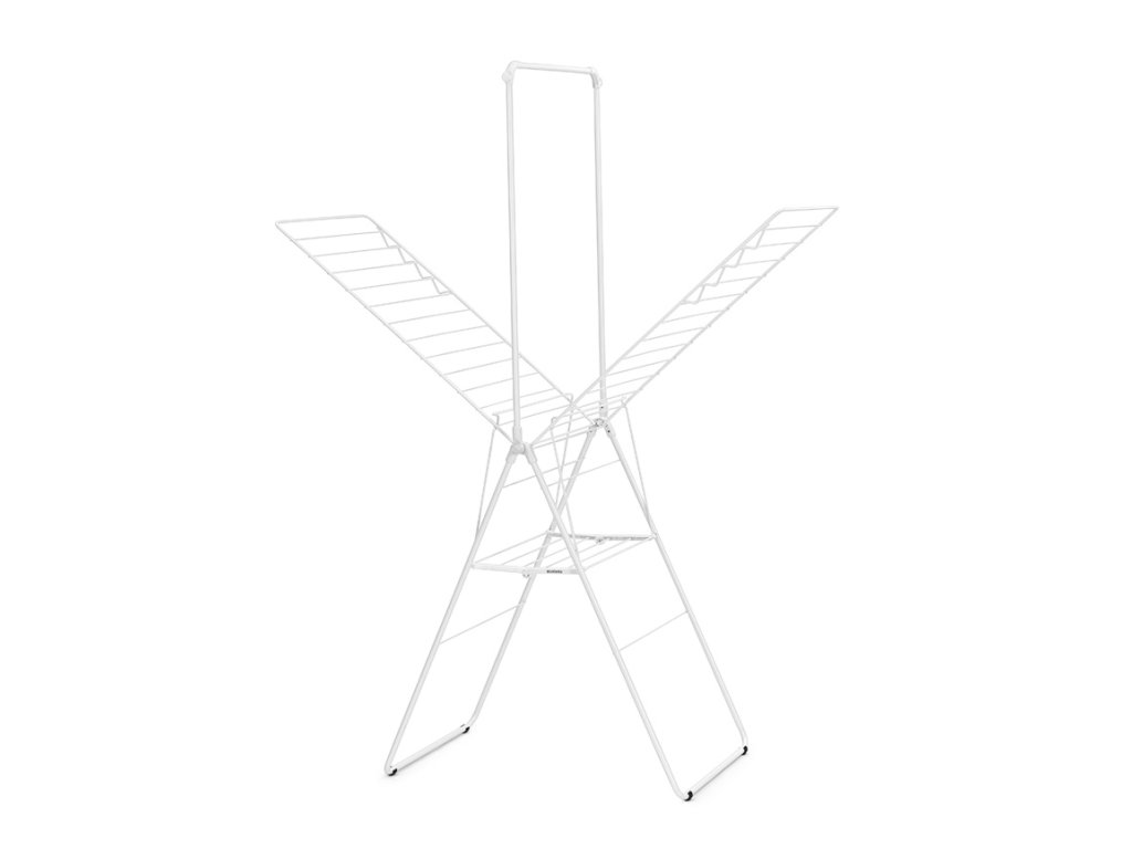 Skládací sušák na prádlo do interiéru v bílé barvě.