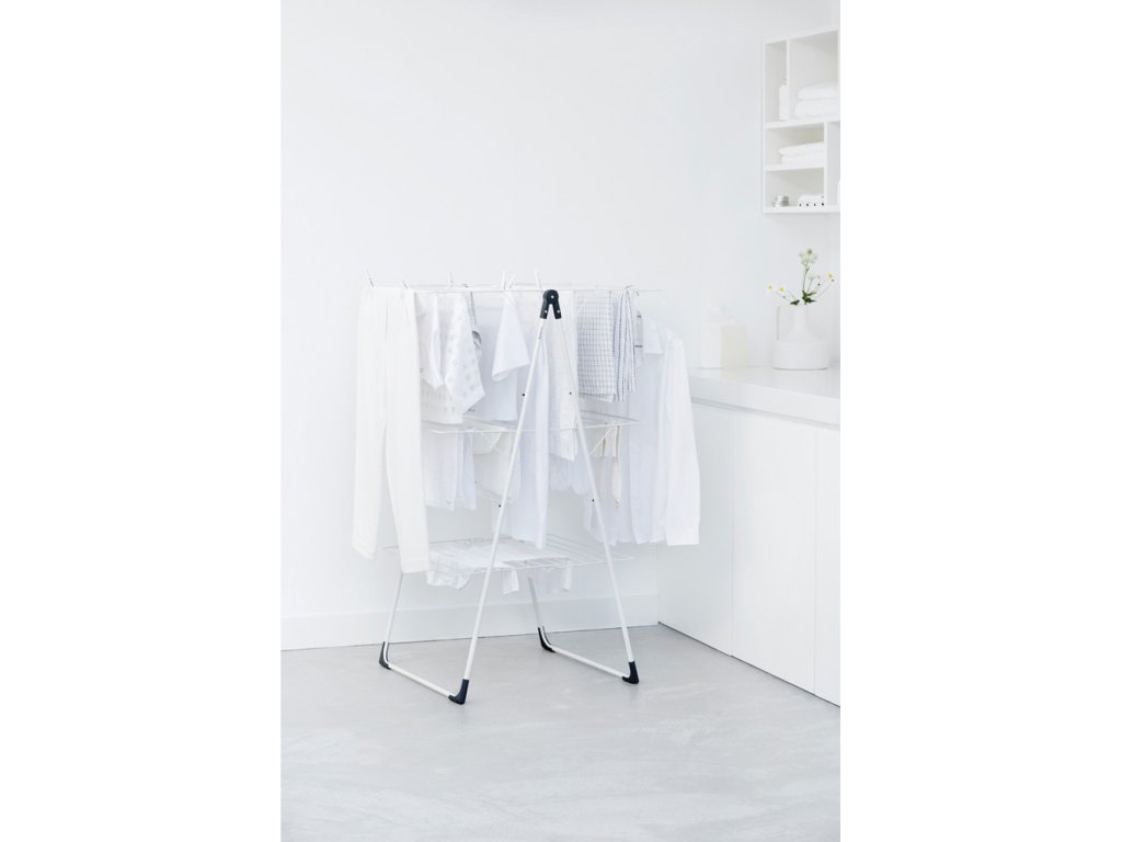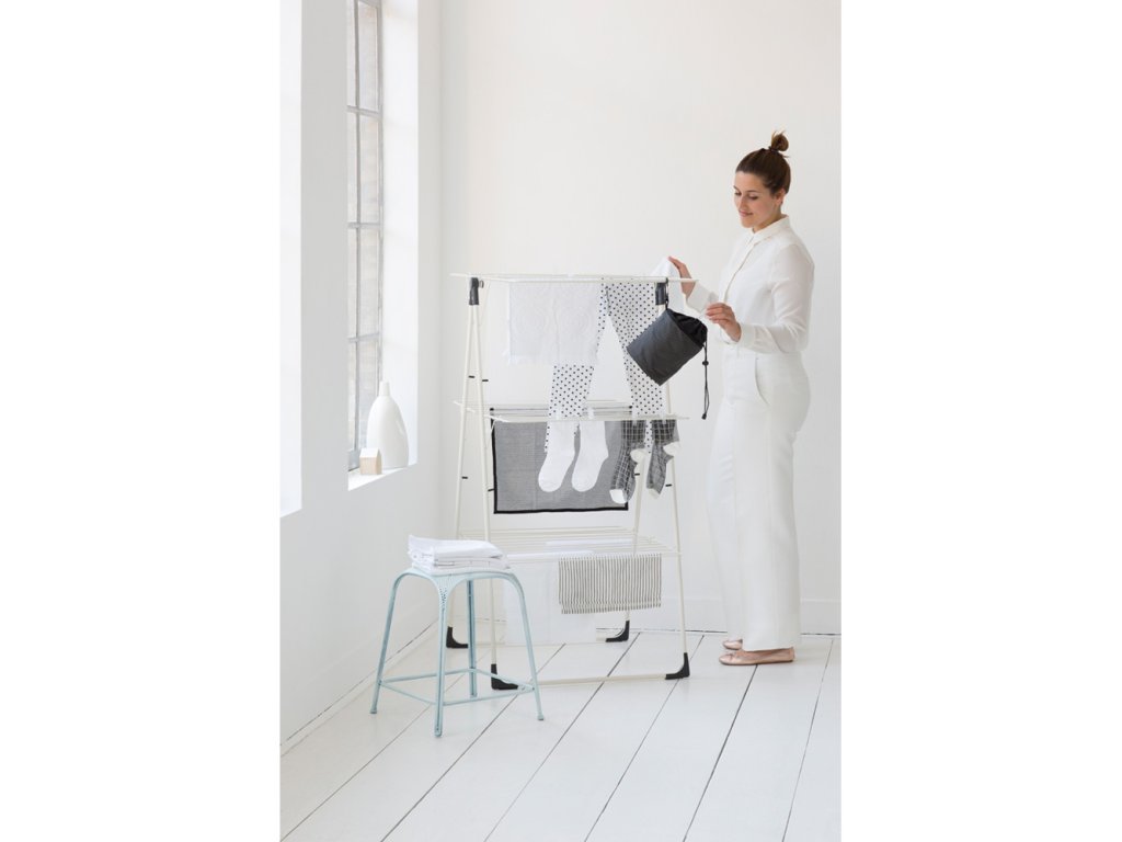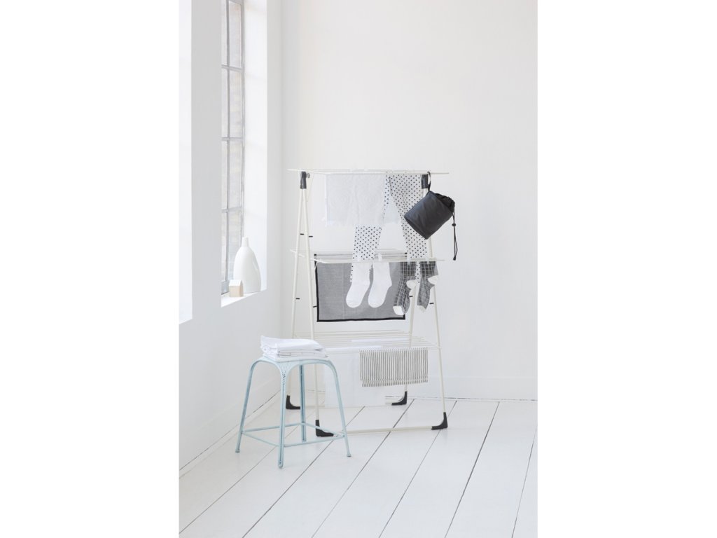 Patrový skládací sušák Tower na prádlo do interiéru.