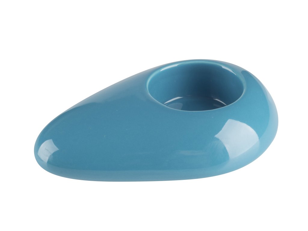 Keramický svícen na jednu čajovou svíčku ve tvaru kamene v lesklé tyrkysové barvě.