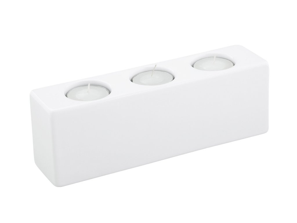 Bílý keramický svícen na tři čajové svíčky, hranatý.