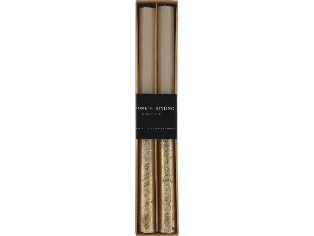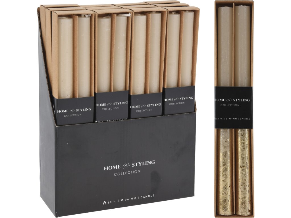 Svíčky klasické vysoké (2 ks, 2x25 cm), bílá/zlatá