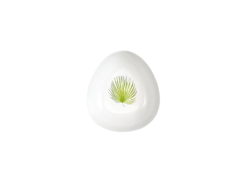 Keramický hluboký talíř se zeleným dekorem palmových listů Ginkgo.