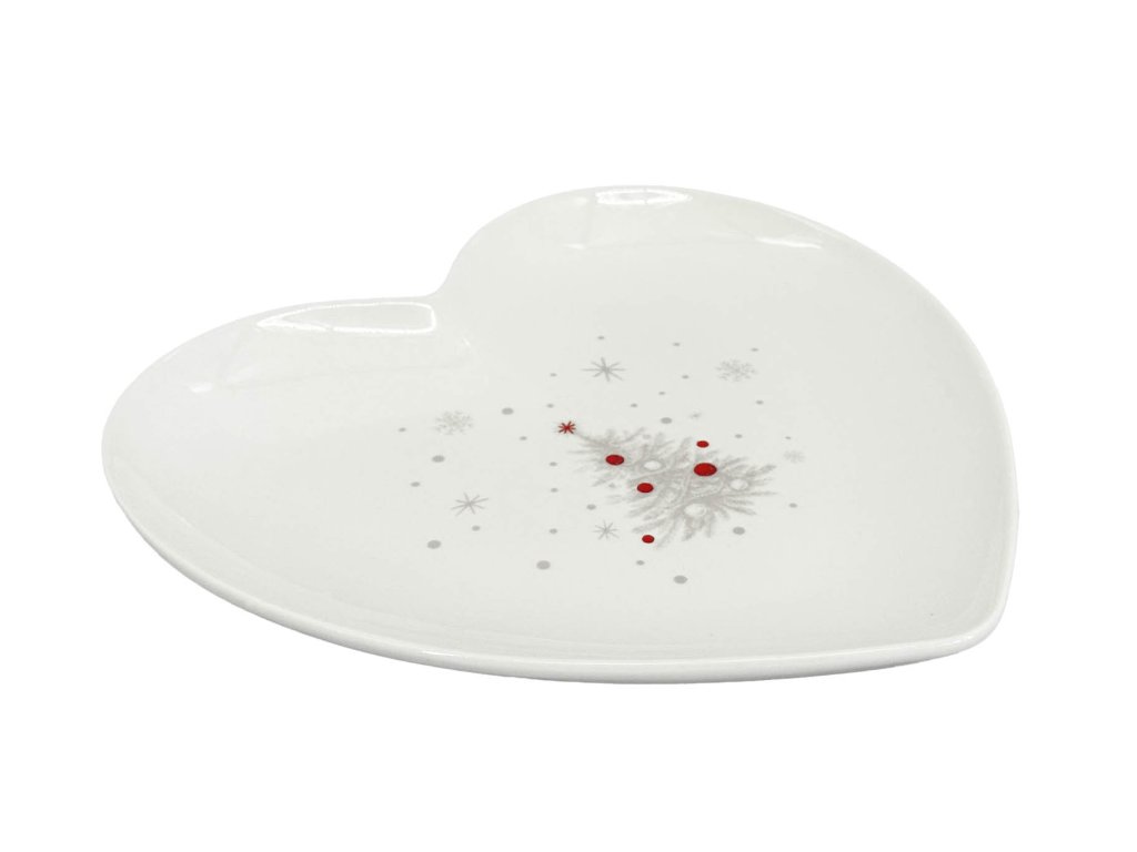 Vánoční talíř ve tvaru srdce s dekorem Koleda přináší kouzlo Vánoc přímo na váš stůl. Vyrobený z kvalitního porcelánu, talíř kombinuje bílou barvu s jemnými červenými a šedými motivy, které připomínají tradiční sváteční symboly. Díky svým rozměrům 20 cm a výšce 2,5 cm je ideální pro servírování dezertů, cukroví nebo malých pochutin během svátečních oslav. Tento talíř dodá vaší tabuli styl a sváteční atmosféru.