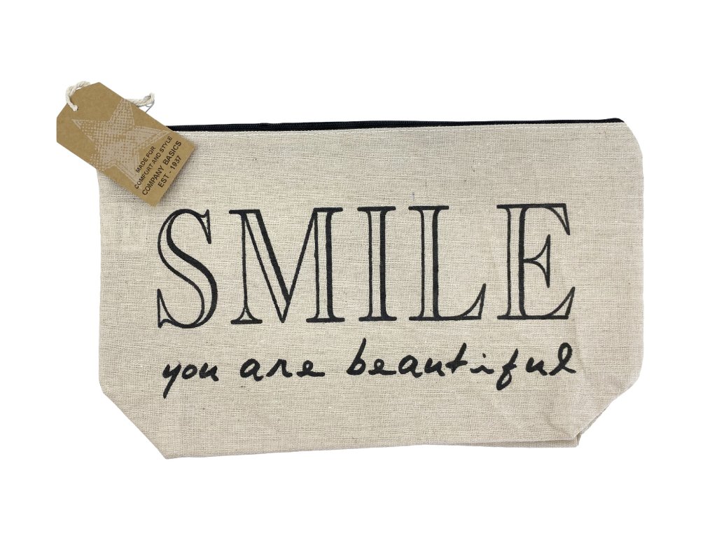 Design: Elegantní design s nápisem "smile" dodává tašce moderní a atraktivní vzhled. Zip zajistí, že všechny vaše věci zůstanou bezpečně uvnitř.