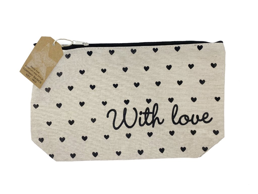 Design: Elegantní design s nápisem "with love" a drobnými srdíčky dodává tašce moderní a atraktivní vzhled. Zip zajistí, že všechny vaše věci zůstanou bezpečně uvnitř.