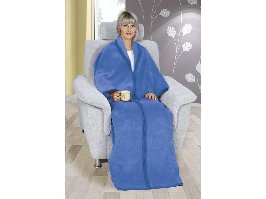 Tento praktický televizní pytel je vyroben z velmi příjemného materiálu, který Vás zahřeje. Je opatřen dělitelným zipem o délce 117cm. Ve spodní části pytle jsou čtyři patenty, které lze zapnout. Tam, kde začíná zip, v horní části, je jeden patent vpravo a jeden vlevo. Zapnutím těchto patentů vytvoříte rukávy. Ve vrchní části je ještě jeden patent, který po zapnutí vytvoří límec. Pytel můžete použít rozepnutý i jako klasickou deku na přikrytí.
