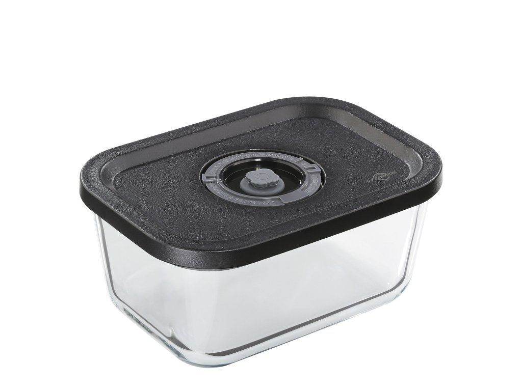 Tým KÜCHENPROFI myslel u vakuového boxu EASYFRESH na něco jiného. Praktická nádoba má přesné umístění pro ukotvení vakuové pumpy. Box z borosilikátového skla je navíc mimořádně odolný. Nejenže vydrží teploty pod bodem mrazu v mrazničce, ale lze ji také použít přímo v mikrovlnné troubě - bez víka - k ohřevu potravin. Nepropustné víko s ventilem a nastavitelným ukazatelem data bezpečně sedí, když vakuovou dózu naplněnou sendviči, ovocem nebo salátem přenášíte do práce, na sport nebo na dovolenou.