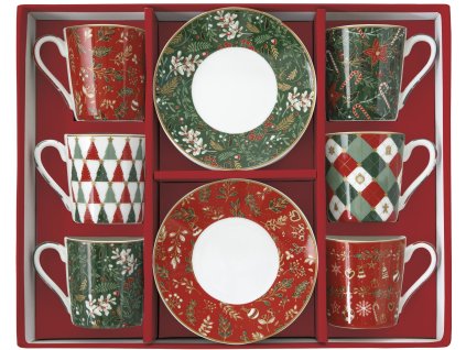 Porcelánové šálky a podšálky na kávu Fancy Christmas jsou součástí kolekce Fancy Christmas italské značky Easy Life