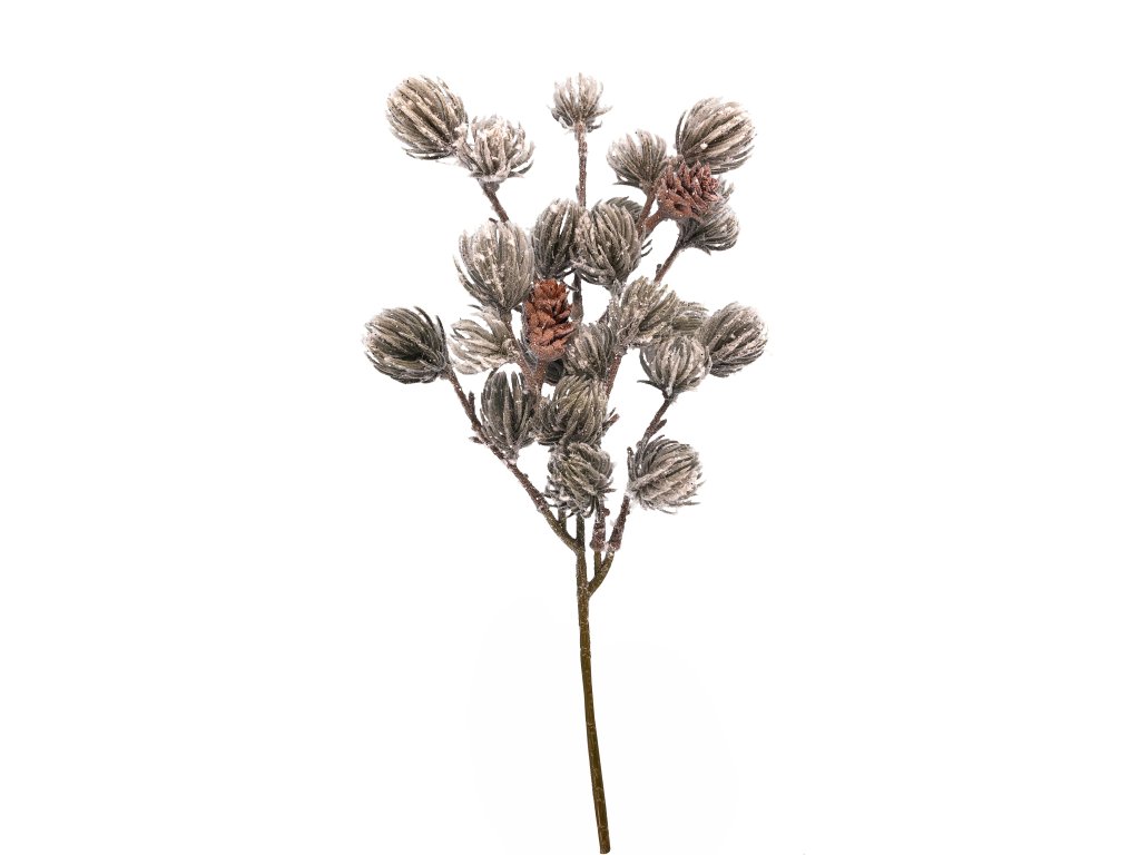 Vánoční borovicová větvička 36cm se šiškami, stříbrná