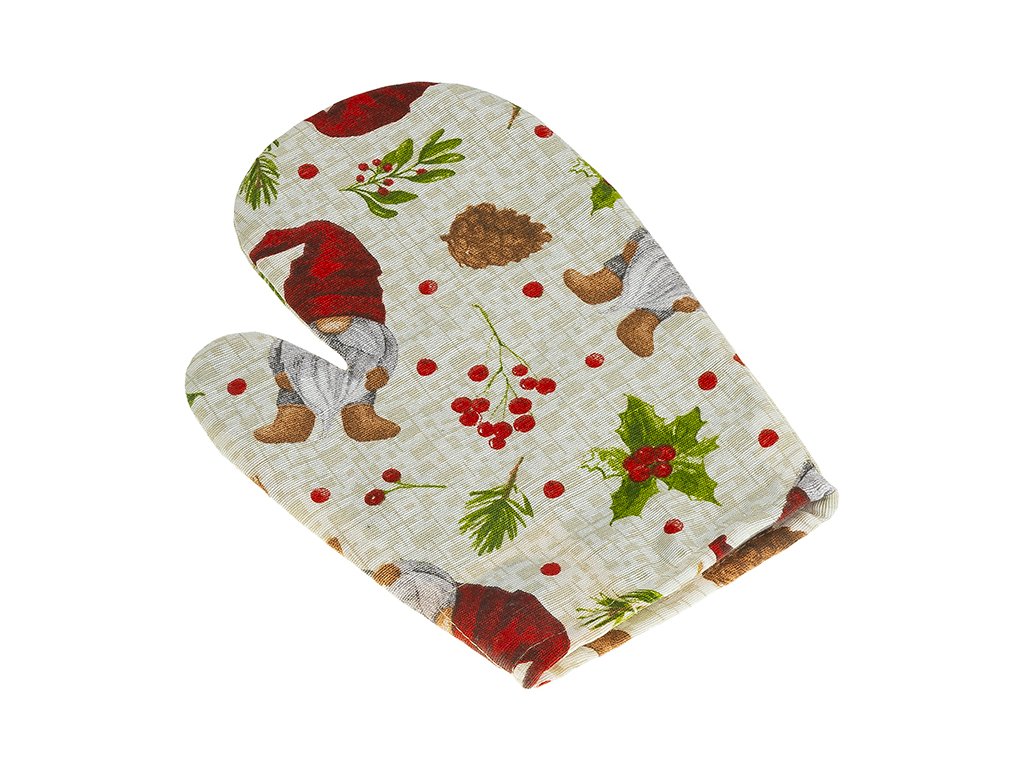 Kuchyňský chňapka je nepostradateným doplňkem pro každou hospodyňku. Je ušita z dostatečně silného materiálu ( výplň tvoří netkaná textilie), díky čemuž se zabrání zbytečnému popálení. Navíc je chňapka opatřena praktickým magnetem a poutkem pro zavěšení. Ve stejném vánočním designu je možné objednat i ubrus na stůl nebo povlak na polštářek 40x40 cm.