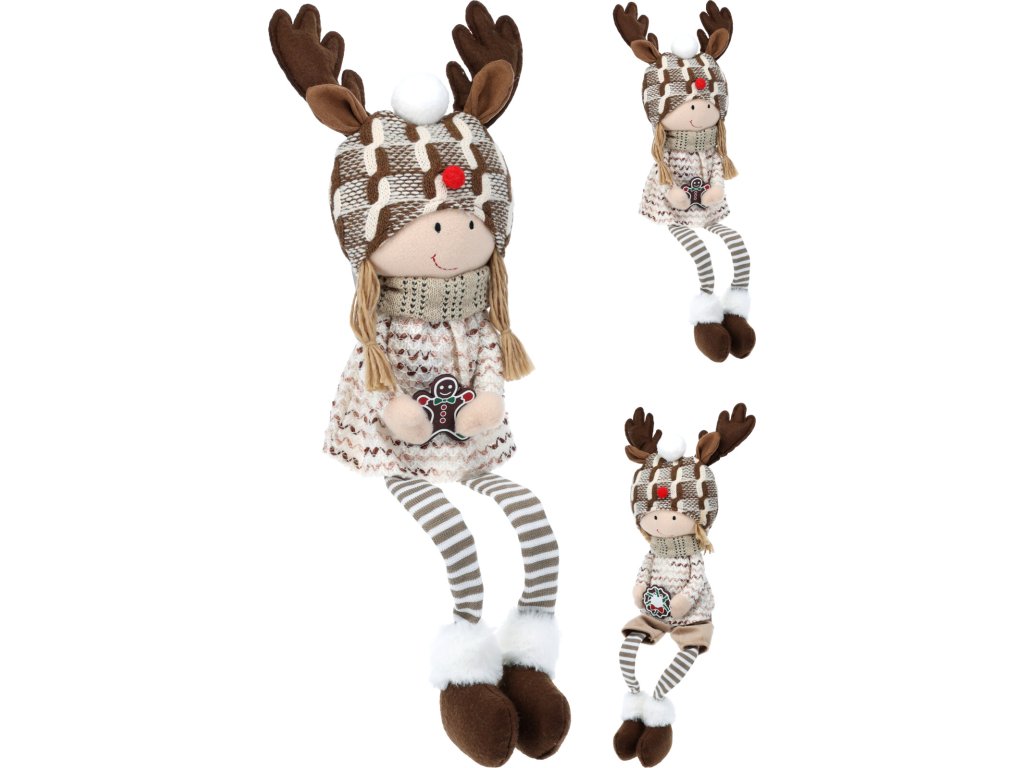 Okouzlující vánoční dekorace představuje sedící dívku s čepicí zdobenou sobími parohy. Roztomilá holčička drží v rukou panáčka z perníčků.