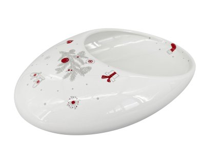 Vánoční mísa Koleda Bean S – keramika by inspire, rozměry 20x13x7 cm, designový tvar „fazole“, slavnostní dekor Koleda (vánoční stromek, vločky, červeno-šedá kombinace), ideální...