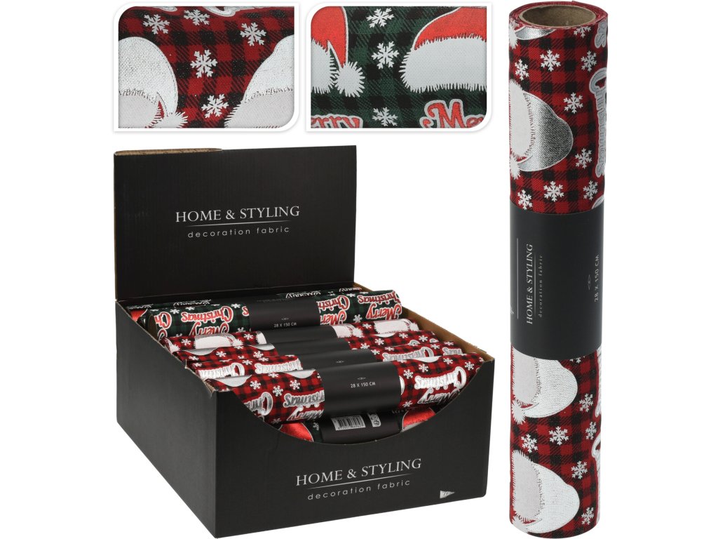 Vánoční dekorační běhoun se Santovými čepicemi, zelený (28x200 cm)