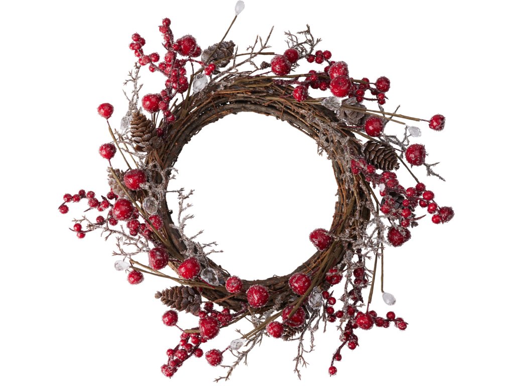Vánoční dekorativní věněc Jeřabina, hnědý s červenými bobulemi 30cm