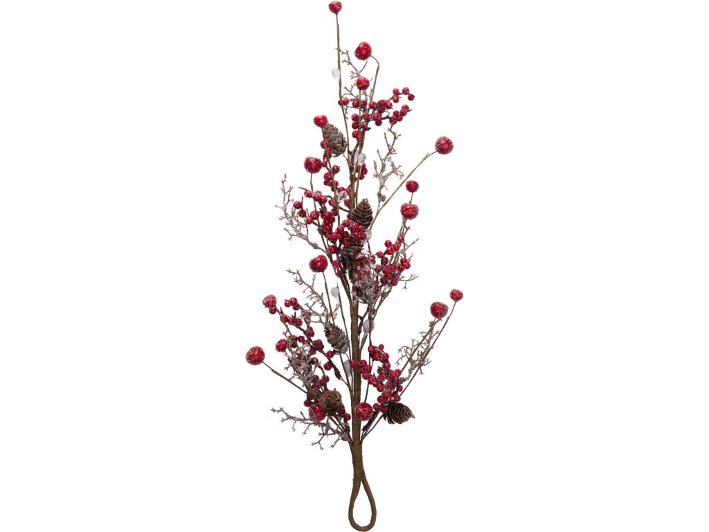 Vánoční dekorativní závěs Jeřabina, hnědá s červenými bobulemi, 25cm