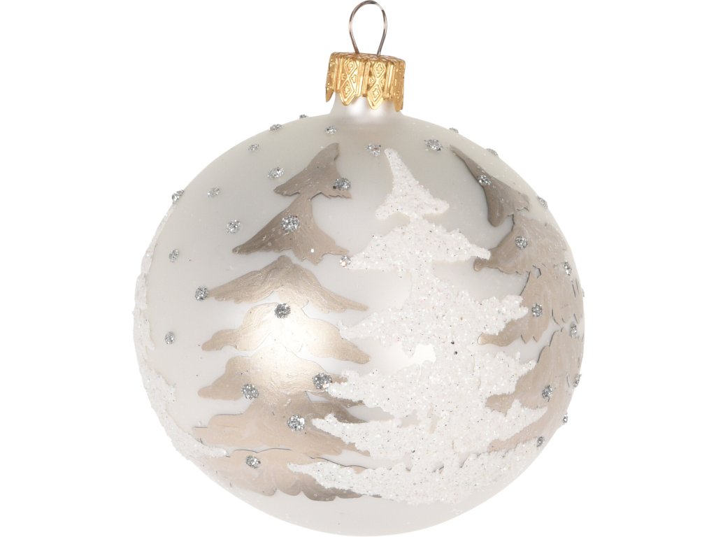 Vánoční koule skleněná s jehličnatým stromečkem, perleťová (8 cm)