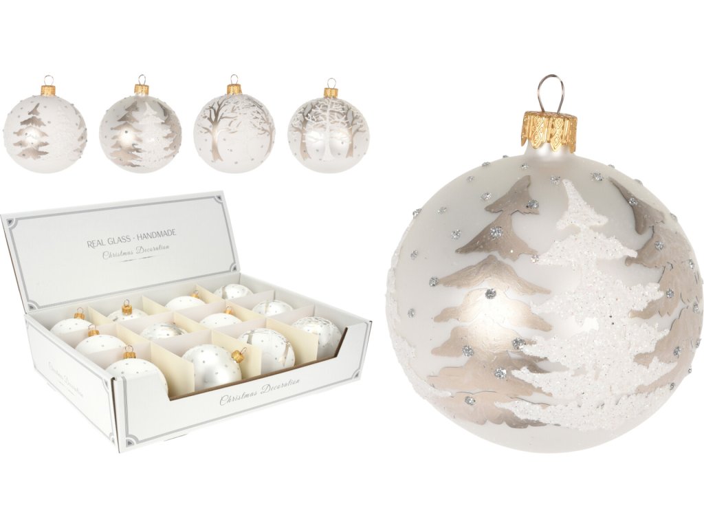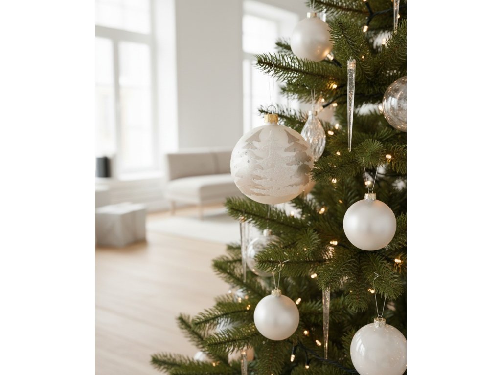 Vánoční koule skleněná s opadaným stromečkem, perleťová (8 cm)