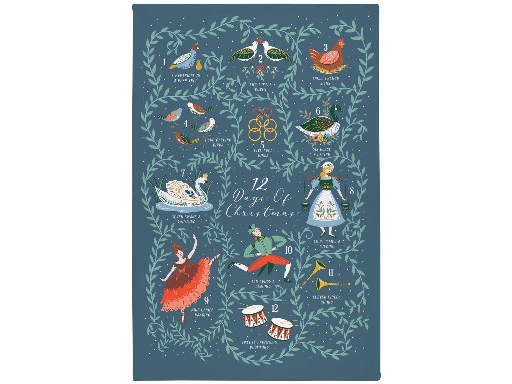 Vánoční kuchyňská utěrka 12 Days Of Christmas Green