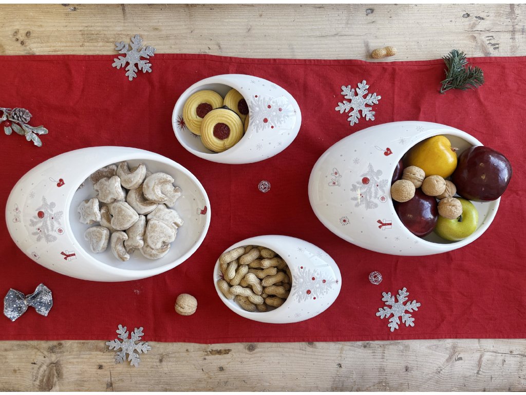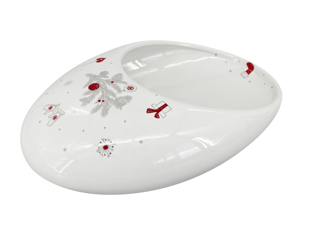 Vánoční mísa Koleda Bean M (30x20x9cm), bílá/červená/šedá