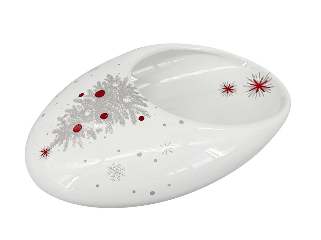Vánoční mísa Koleda Bean S (20x13x7cm), bílá/červená/šedá