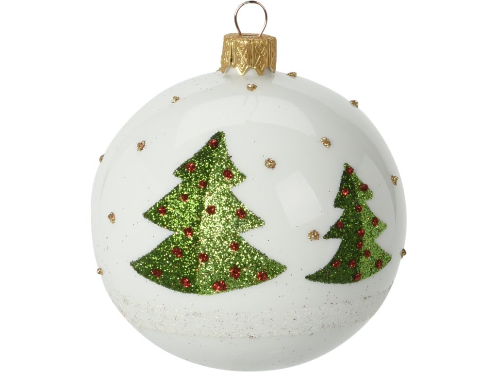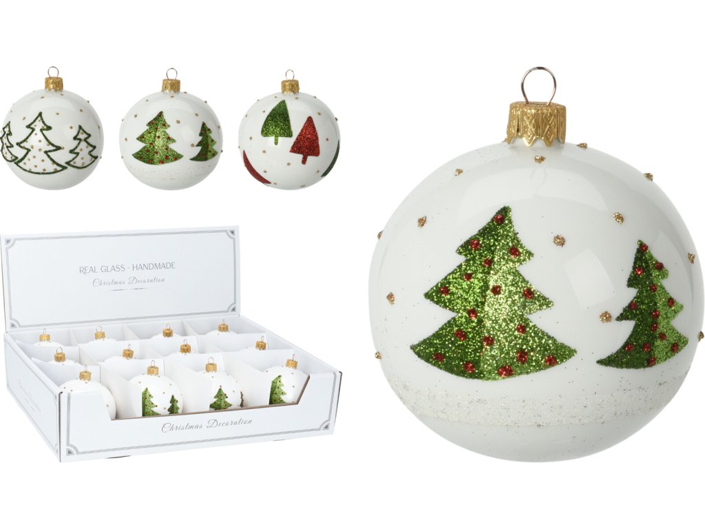 Vánoční ozdoba koule ø 8cm, zelený strom s červenou