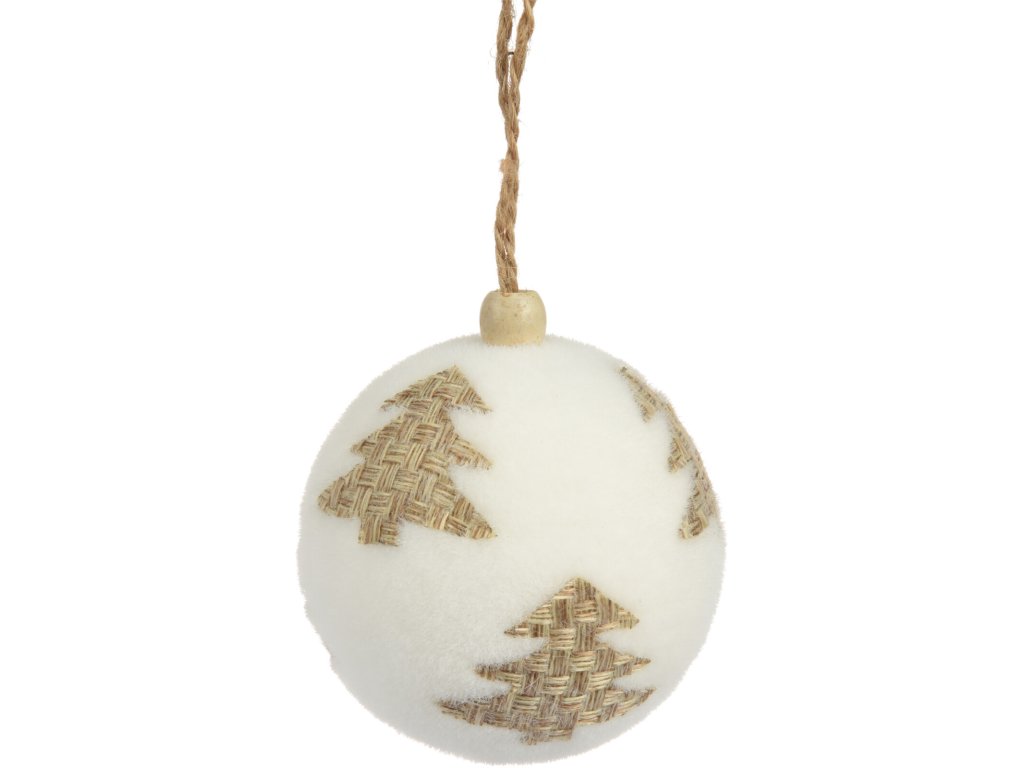 Vánoční ozdoba koule 8cm, bílá slámový stromek
