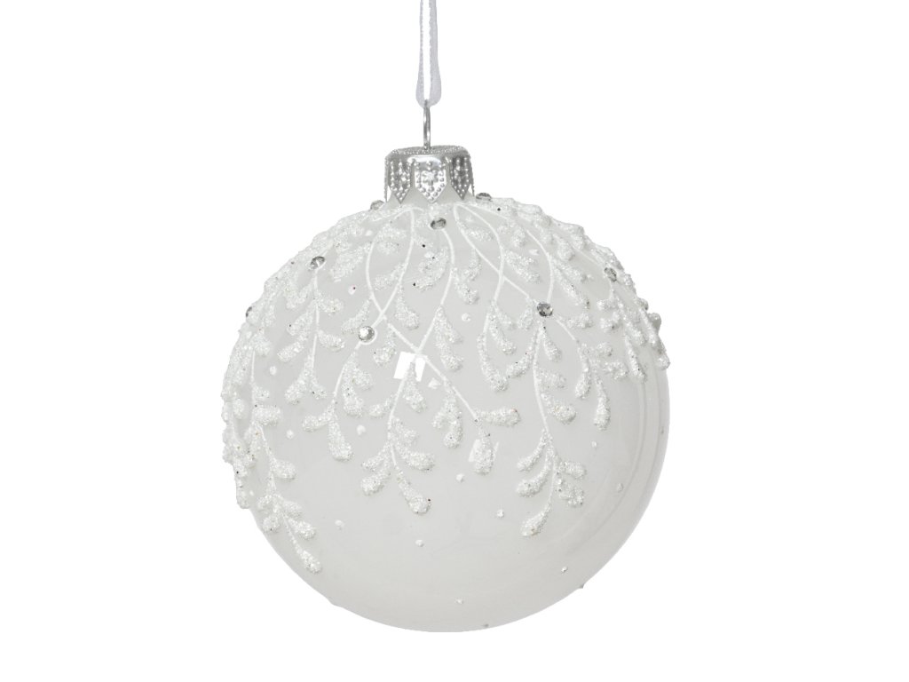 Vánoční ozdoba LEAVES ALL OVER, 8 cm, bílá, KSD